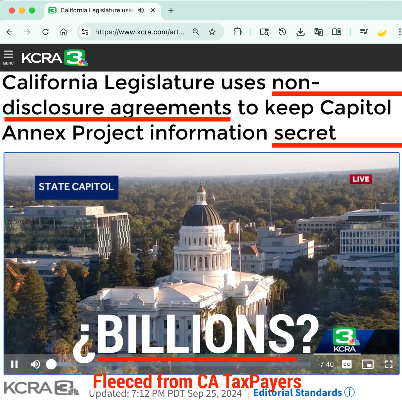 Since Trip_S hopes to be running fo US Senate in 2030 & 2040, & is probably trying to build a record of credible & meaningful fiscal responsibility ( & transparency? ), will y’all put forth a Resolution to DEMAND that gubbernator Gavin Newsom immediately & responsibly disclose the total current accurate cost to CA Tax Payers for the California Capitol Building Annex which has reportedly shockingly exceeded the BILLION dollar mark several times over ( original 2018 proposal was $500 Millions & has already missed all original deadlines & timelines ) & will be fleeced from all CA Workers’s & Business Owners Earnings & Savings ( while others obsess over the US$250 Millions privately -funded for the Trump WH Annex ) ??